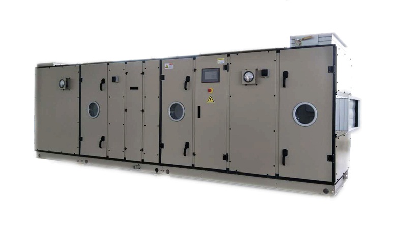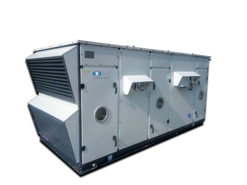將室外的新鮮空氣經處理后送入封閉區域、房間的機組,其蒸發器進風方式為全部新風(或者新風量占總送風量50%以上的也可以參考本規范),特點是工況惡劣、工況變化大。此類機組包括制冷、制熱、加濕、除濕、通風、潔凈等功能。其目的是為了配合回風機組,對房間工況進行調節,一般精度要求不高。在空氣調節系統中,其主要作用是: