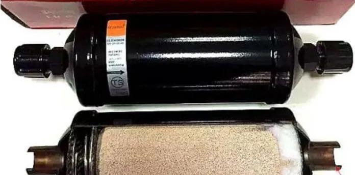 我們用干燥過濾器清除制冷劑中的這些異物,確保系統更有效地工作。干燥過濾器的作用是防止制冷系統吸入有害物質。可以清除制冷劑中的水分,從而防止膨脹閥 的流口上結冰。它還能清除其他固體污染物、腐蝕物和酸。能清除異物顆粒,最大限度防止系統中發生 化學反應。