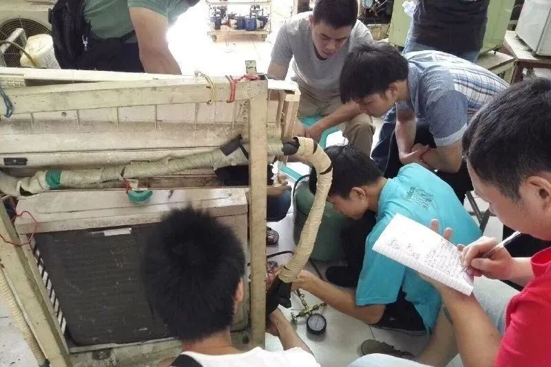 由于空調(diào)器內(nèi)有制冷劑,在維修過程中可能泄漏,泄漏的空調(diào)器制冷劑明火會(huì)生成有害氣體。因此拆裝空調(diào)器應(yīng)選擇通風(fēng)的工作場所,并注意做好防火。