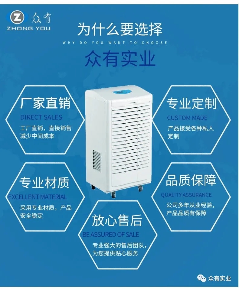 隨著科技的不斷進步,人們對家居環境的要求也越來越高,尤其是在梅雨季節,如果能有一種設備可以消除濕氣,讓環境變得更干爽,那么將會是一種美好的體驗。真的有這樣的設備嗎?當然有!這就是除濕機!除濕機通常分為家用型和工業型兩種,其主要功能就是進行環境除濕。一般而言,除濕機因為使用功能的不同,也采用了不同的工作原理。我們常見的眾有旗下的除濕機產品,就采用了蒸發器冷卻除濕,由再熱器加熱升溫,降低相對濕度,即升溫除濕的原理。